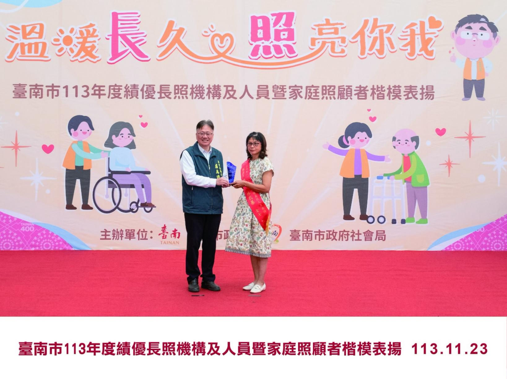 臺南市113年度績優長照機構及人員暨照顧者楷模表揚